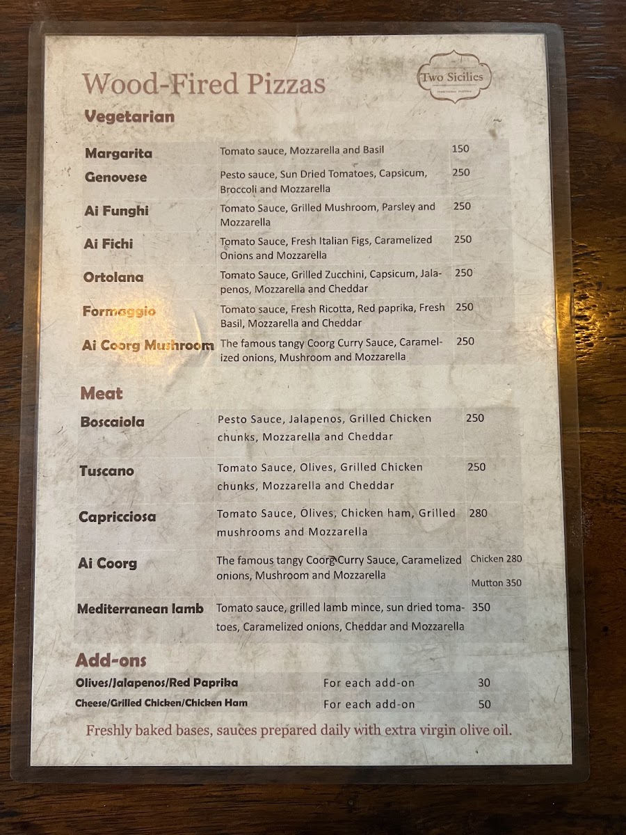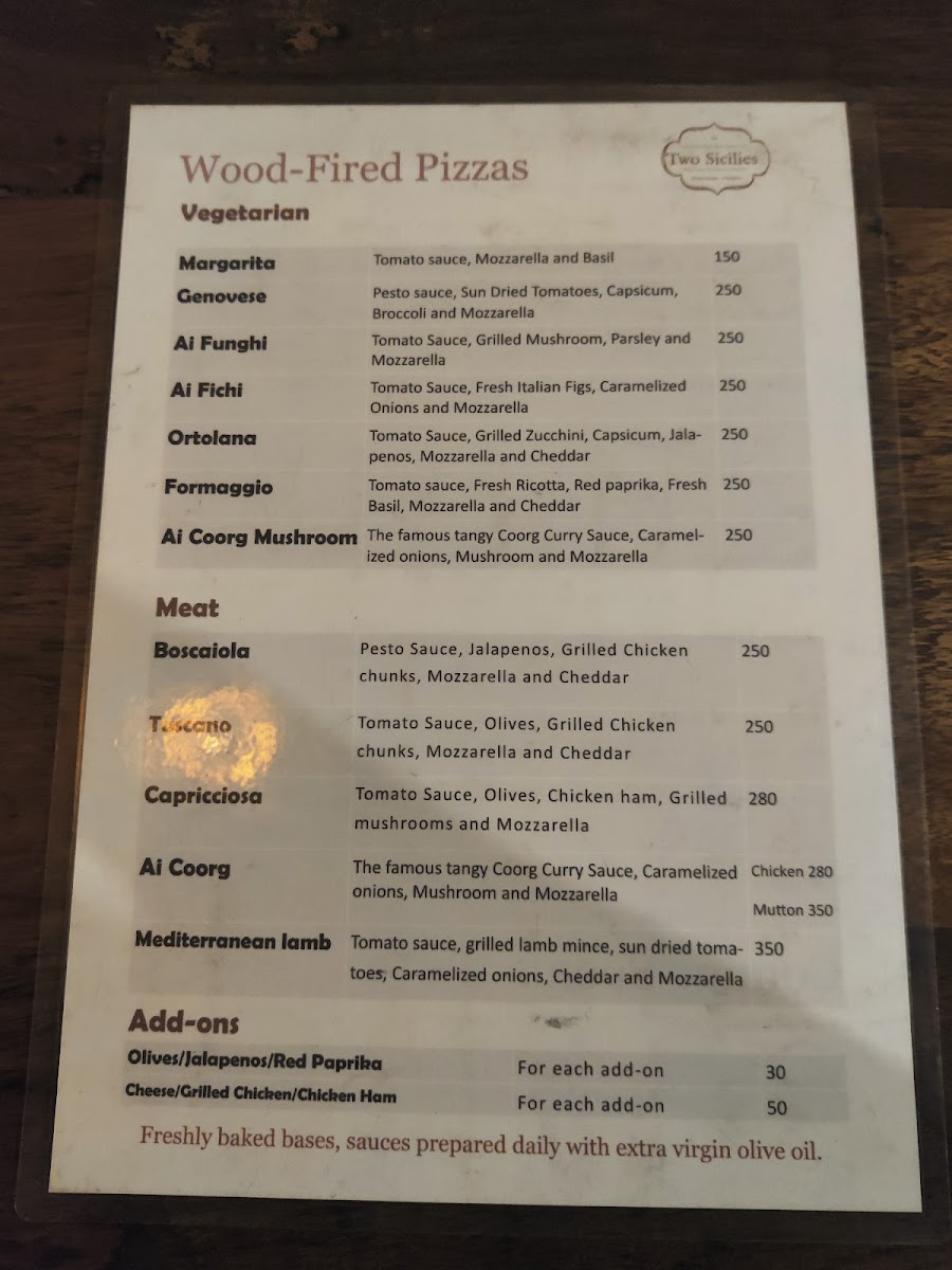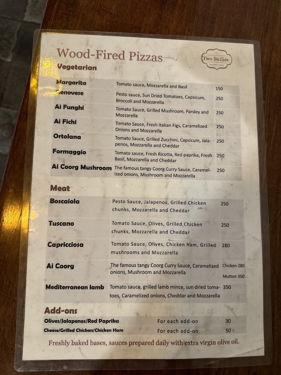 - Signature Dishes: The Boscaiola pizza and the regional Ai Coorg are standout choices that showcase authentic taste.